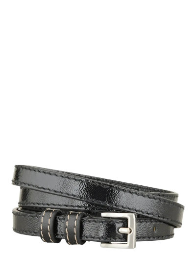 A sleek, slender belt adds a touch of polish to any outfit. Featuring a subtle sheen and a classic buckle, this accessory is ideal for cinching dresses or adding definition to your waistline.