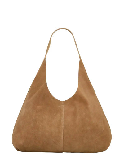 Crafted from soft suede, this shoulder bag offers a relaxed silhouette. A single stitched seam adds subtle detail to the front.