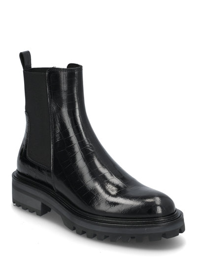 Handcrafted classic Chelsea boot. Rubber sole and rounded toe. Decorative elastic panels. Detailed with a strap at the back.