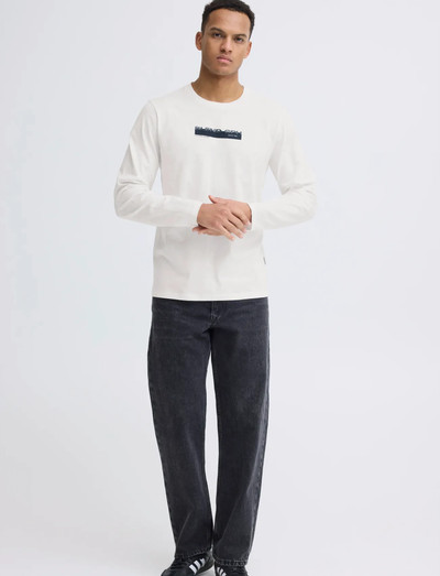 A classic long-sleeve tee offers versatile style and everyday comfort. The design features a crew neck and a graphic print on the chest.