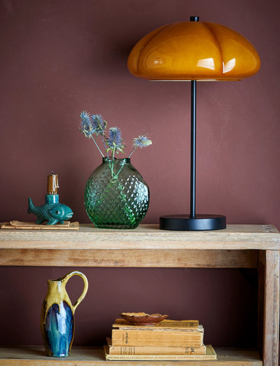 The Kinoko Table Lamp by Creative Collection casts a soft glow that creates a cozy atmosphere in any setting. The curvy glass shade in a warm yellow hue, pairs beautifully with the black metal base, making it both functional and decorative.
