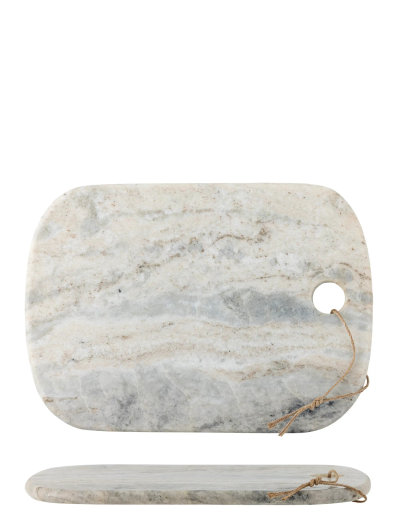 The Sibelle Cutting Board by Bloomingville is made of marble in warm light tones. The board has a leather cord for hanging and can be used both for serving and Deco. The natural material ensures that each Cutting Board is unique.