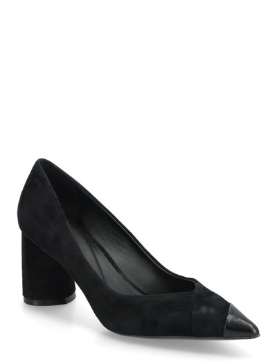 A sleek silhouette defines these pumps, making them a versatile addition to any wardrobe. The design features a block heel and a contrasting toe cap, offering a modern twist on a classic style.