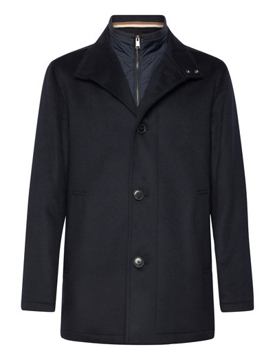 Crafted from wool, this coat features a button closure and a layered design with a quilted inner panel. A versatile piece for cooler weather.