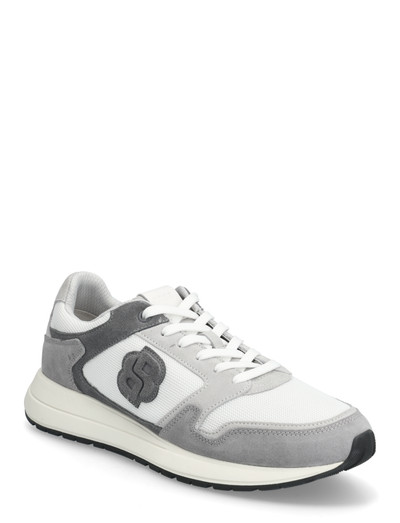 These low-top sneakers feature a blend of textures across the upper, offering a contemporary look. The design incorporates a subtle logo detail on the side, complemented by tonal stitching and a comfortable sole for all-day wear.