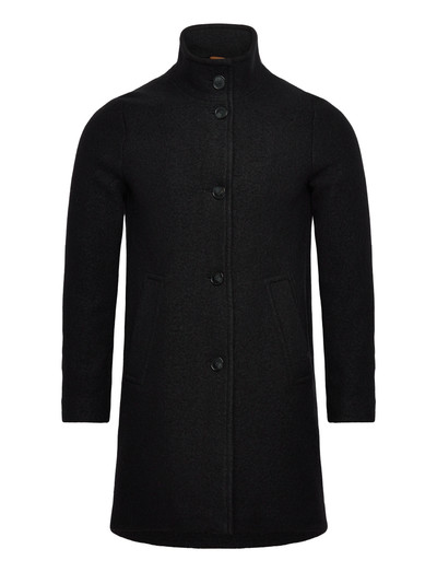 A timeless outerwear piece, this wool coat features a clean, minimalist design. The coat is detailed with a stand collar and a button-up front, offering a refined silhouette. Its streamlined shape makes it a versatile addition to any wardrobe.