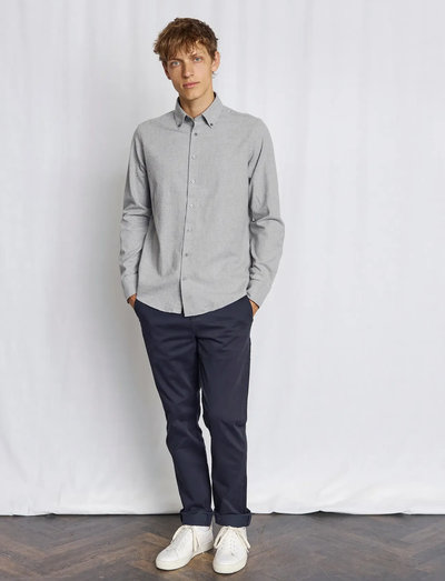 Our Casual Modern fit shirt is the perfect shirt for the man who needs or prefers a wider fit with a casual touch. 100% Cotton with brushed handfeel. Button-down collar, french placket with grey buttons and sleeve with adjustable cuff.