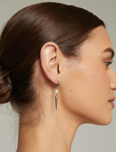 An expressive earring in a distinct peak shape, combined with a soft, round pearl. The contrast between the raw, textured form and the timeless elegance of the pearl creates a modern piece of jewelry with strong character. The chiseled finish reflects light vibrantly, giving the earring an exclusive and artistic expression.