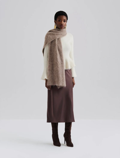 Crafted from a soft alpaca blend, this knit top features a flattering peplum silhouette. The long sleeves finish with a subtle flare, adding a touch of elegance to this comfortable piece.