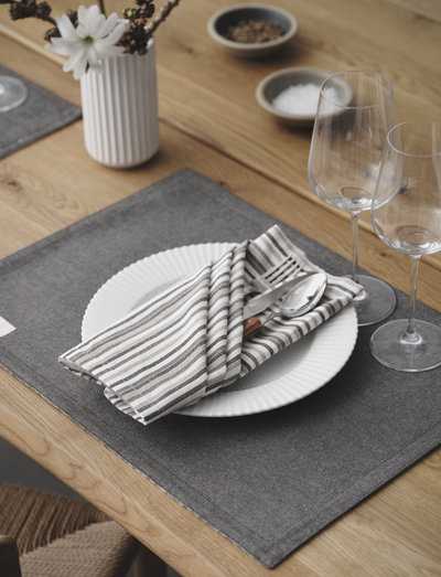 The elegant cloth napkins from By Mogensen are produced in a sustainable material of 100% organic GOTS certified cotton. The fabric napkin is woven in beautiful stripes with Nordic, harmonizing gray and brown shades that fit perfectly into many styles. The delicious cotton of the highest quality makes the cloth napkin look nice and elegant, no matter how it is folded. At the same time, a timeless, calm and homely expression is created in the room. The fabric napkin has a classic, square-shaped shape that measures 50x50 cm. With a fabric napkin from By Mogensen, you can easily create a personal expression in traditional materials and with inviting, unique designs and colours. The collection is inspired by Emilie Mogensen's grandmother and grandfather, Alice and Børge Mogensen. They were both designers and had a great love for the individual craft. Børge Mogensens was one of the greatest furniture designers of our time. His simple and functional designs have been enjoyed by consumers worldwide for half a century. Emilie Mogensen has reinterpreted the textile craft of the time, based on the Nordic design tradition. Slow living, good craftsmanship and sustainable aesthetics are the key words for by Mogensen. The Børge Mogensen family has always placed great emphasis on sustainability, which is why the collection is produced with the recognized GOTS certification for cotton, the world's strongest certification, which ensures the best standards within the environment, working conditions and wages.
