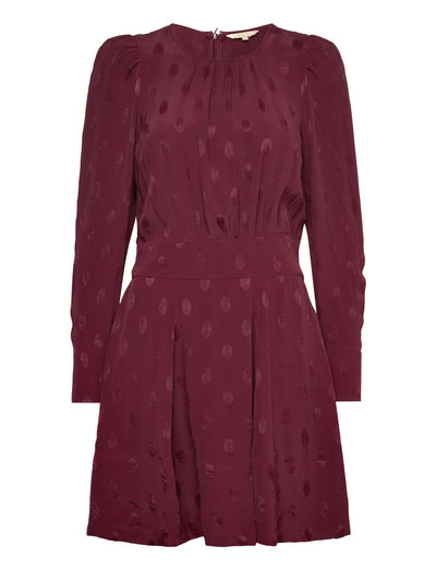 The Viscose Mini Dress is cut in our FSC certified viscose quality with a subtle shine. The dress has a mini length, long sleeves, round neckline, fitted waistline with elastic at the back waistband, and a flared skirt. It closes in the side with a zipper.