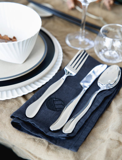 Our new cutlery in stainless steel is inspired by the movement of waves. The round shapes create a softness which in contrast to the sharp parts create a fantastic dynamic. Available in gift packaging with 16 pieces.