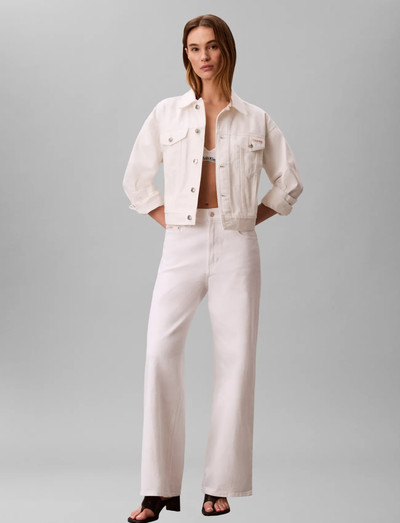 Highlights rigid cotton denim pointed collar branded metal buttons slit pockets, flap chest pockets chalk white wash Calvin Klein leather logo badge Shape & Fit authentic 90s fit Composition & Care 100% cotton machine wash country of origin: Bangladesh