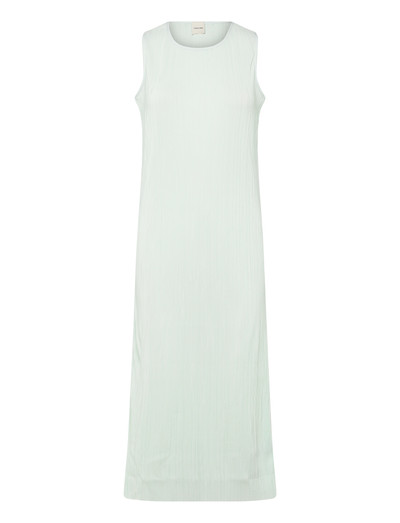Crafted with a distinctive plissé texture, this midi dress offers a sophisticated and modern silhouette. The sleeveless design and flowing fabric create an elegant and comfortable fit, perfect for various occasions.