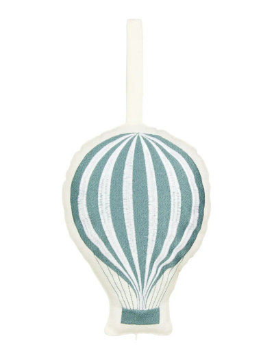Adorable Music Mobile in the shape of a hot air balloon, inspired by dreamy journeys through the skies. With its delicate embroidery, the mobile will add whimsical charm to any nursery and delight little and big hearts alike. Draw the string and the mobile plays a soothing tune, perfect to bring calm entertainment in changing situations or when going to sleep. The mobile features a velcro strap at the top so it’s easy to hang wherever needed and carry along for on-the-go entertainment. A lovely gift and keepsake for baby showers, birth gifts, and first birthdays.