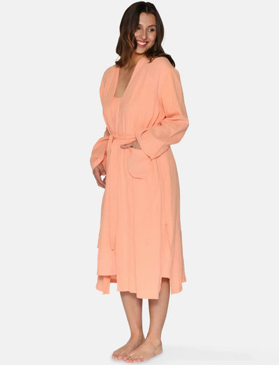 Featuring a tie-waist and relaxed fit, this kimono offers effortless style and comfort. The open-front design and wide sleeves enhance its laid-back appeal, making it perfect for lounging.