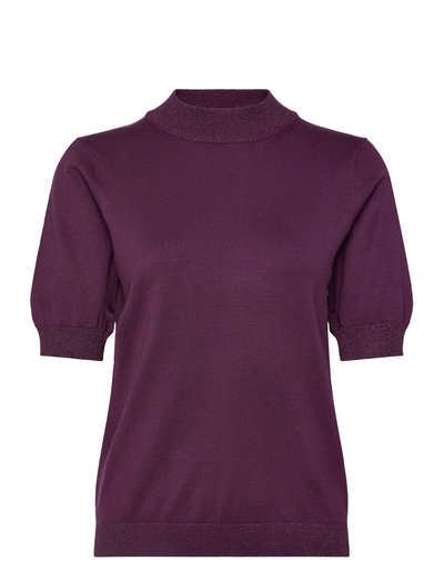 Featuring a subtle sheen, this top offers a refined look. It's designed with short sleeves and a high neckline, making it a versatile addition to any wardrobe.