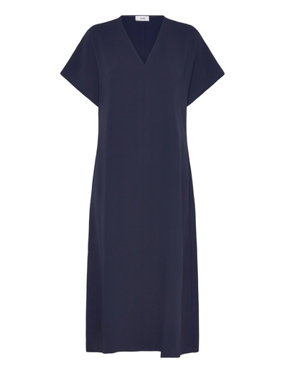A simple V-neck and relaxed fit define this elegant dress. The short sleeves and straight cut create a modern silhouette, making it a versatile choice for various occasions.