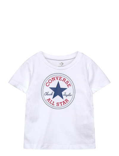 A classic crewneck and short sleeves make this tee a comfortable everyday choice. It features a prominent logo on the chest.