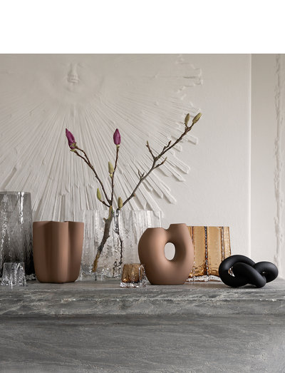 The gry series is made of mouth blown glass which makes each piece unque. the collection contains tree vases and one tealight, all in three different colors. "rich is detail, the gry vases are elegant sculptures that elevates the flowers and water placed inside and plays with the daylight in its structured surface and color. the candleholder takes the light from the wick lit inside and turns it into a beautiful pattern projected onto the surface on which it stands. the inspiration for the shape comes from the trunk of trees. starting from the ground you can see the beginning of the roots before turning more round in shape further up. gry, meaning dawn in danish, has different word associations, as it is also a play on the word “gro” which means “to grow”. - designed by tim torp hansen, five seven