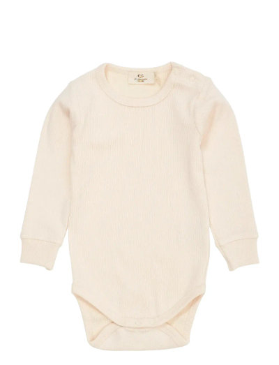 This ribbed modal bodysuit features snap closures between the legs. It has long sleeves and a round neckline.Fabric composition: 47% Organic Cotton / 47% Modal / 6% Elastane