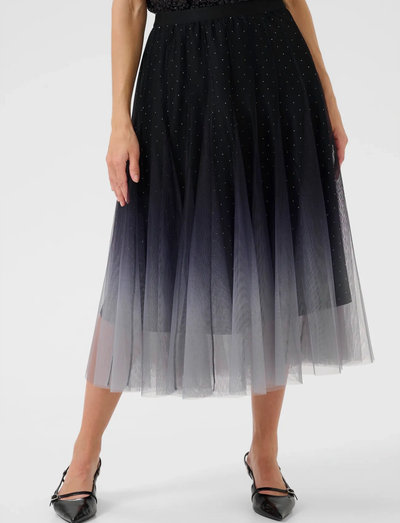 Delicate mesh fabric gives this skirt a light and airy feel. The subtle glitter detail adds a touch of sparkle, making it perfect for dressing up or down. Its flowing silhouette ensures a flattering fit.