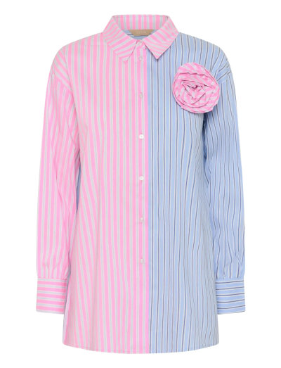 Featuring a striking striped pattern and a unique floral appliqué, this long-sleeved shirt offers a distinctive look. The button-down design adds a touch of classic style, making it a versatile addition to any wardrobe.
