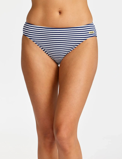 Explore Damella's Brigitte bikini brief with a seersucker effect and low waist, perfect for a trendy and comfortable beach look. The brief has a snug fit and is lined at the front for extra comfort and coverage.
