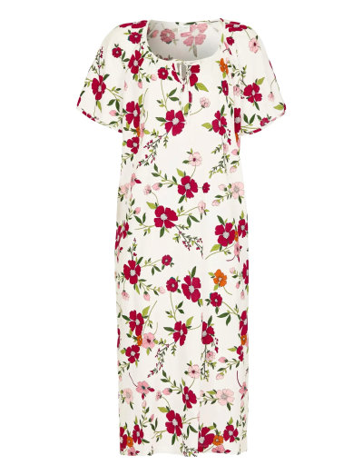 This long nightdress in soft cotton jersey combines comfort with sophisticated style. Short-sleeved design with gathered details at the front that can be tied into a bow, adding a feminine and elegant finish, perfect for cozy evenings with a touch of luxury.