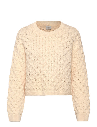 Tulsa in Butter Cream is a great everyday sweater. This crewneck , cable knit is made from an organic cotton and wool blend. Its special detail is the half open back with its braided knitted band. Go casual with one of our denims or wear it with our skirt Dimal for a sensual look.