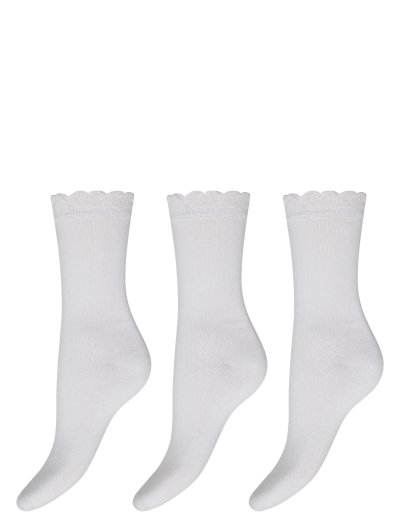 Three pairs of socks with a delicate, scalloped trim. These ankle socks offer a touch of elegance to everyday wear. The soft material ensures a comfortable fit.