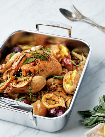 Cod with onion and cherry tomatoes, eggplant and zucchini with grilled halloumi cheese, texmex ribs, … whatever oven dish you come up with for your family or friends, this stainless steel specialties 5 roasting pan (32 x 26.50 cm) ensures a delicious result . and it fits effortlessly into a standardsized oven. on the stove you fry them until nice and golden brown. then your delicious creation can go into the oven to continue cooking. this roasting pan is made entirely of 5layer material and conducts the heat smoothly to the edge. ideal on gas, but particularly suitable for all hobs, including induction. the special silvinox® technology prevents discolouration, maintains the shine and ensures that you can effortlessly clean your roasting pan every time. washing up is done in no time. the beautiful handles are firmly welded and remain cool for a long time. this handy, spacious roasting pan gives you intense satisfaction from your kitchen performance.