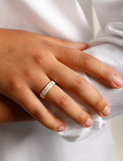 A thoughtful gift, this ring features a delicate band with the word 'mom' inscribed on its surface. This piece from Design Letters adds a personal touch to any outfit.