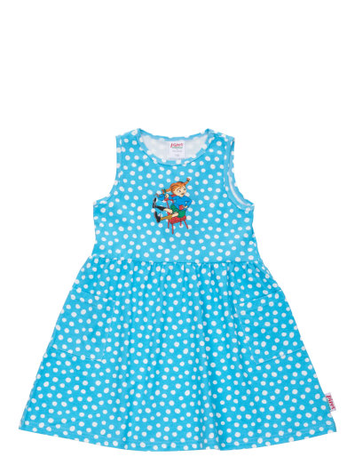 A beautiful Pippi dress for children. Sleeveless with round neckline and pockets on hem. The dress is made with certified organic cotton blend.