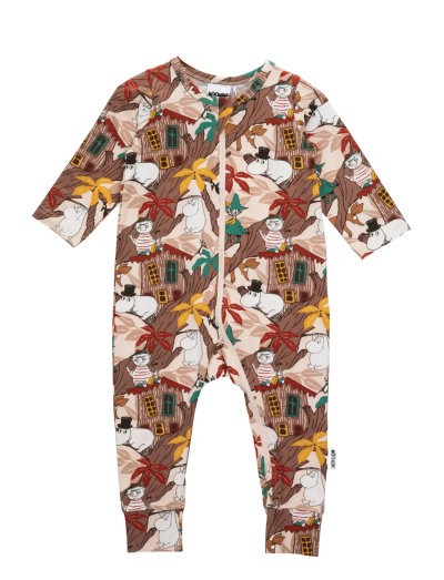 A soft Moomin pyjamas for babies. The pyjamas has long sleeves and a long zipper for easy dressing and diaper change. The pyjamas is made with certified organic cotton blend.