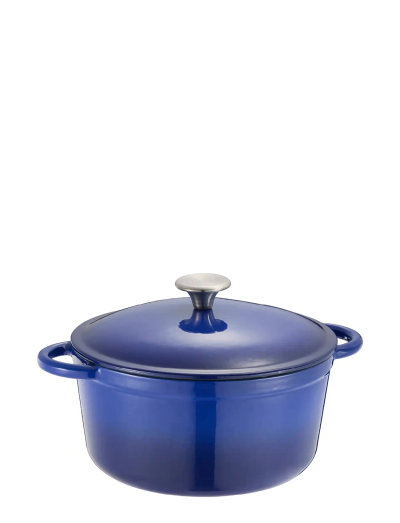 Classic 4 L cast iron casserole in blue enamel that retains heat and ensures even cooking – great for large family dinners.