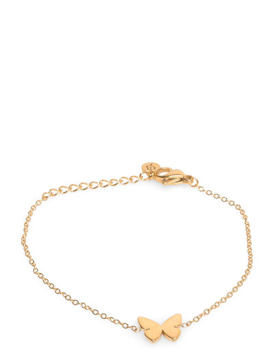 The Papillon collection is decorated with a lovely, stylised butterfly in flight. The Papillon Bracelet Gold depicts a small butterfly attached to a fine anchor chain, shown here in polished 14K gold plate. The butterfly is a universal symbol that fascinates people worldwide. Size 10x9 mm, adjustable length of bracelet 15,5-18,5 cm. Nickel safe. Water resistant.