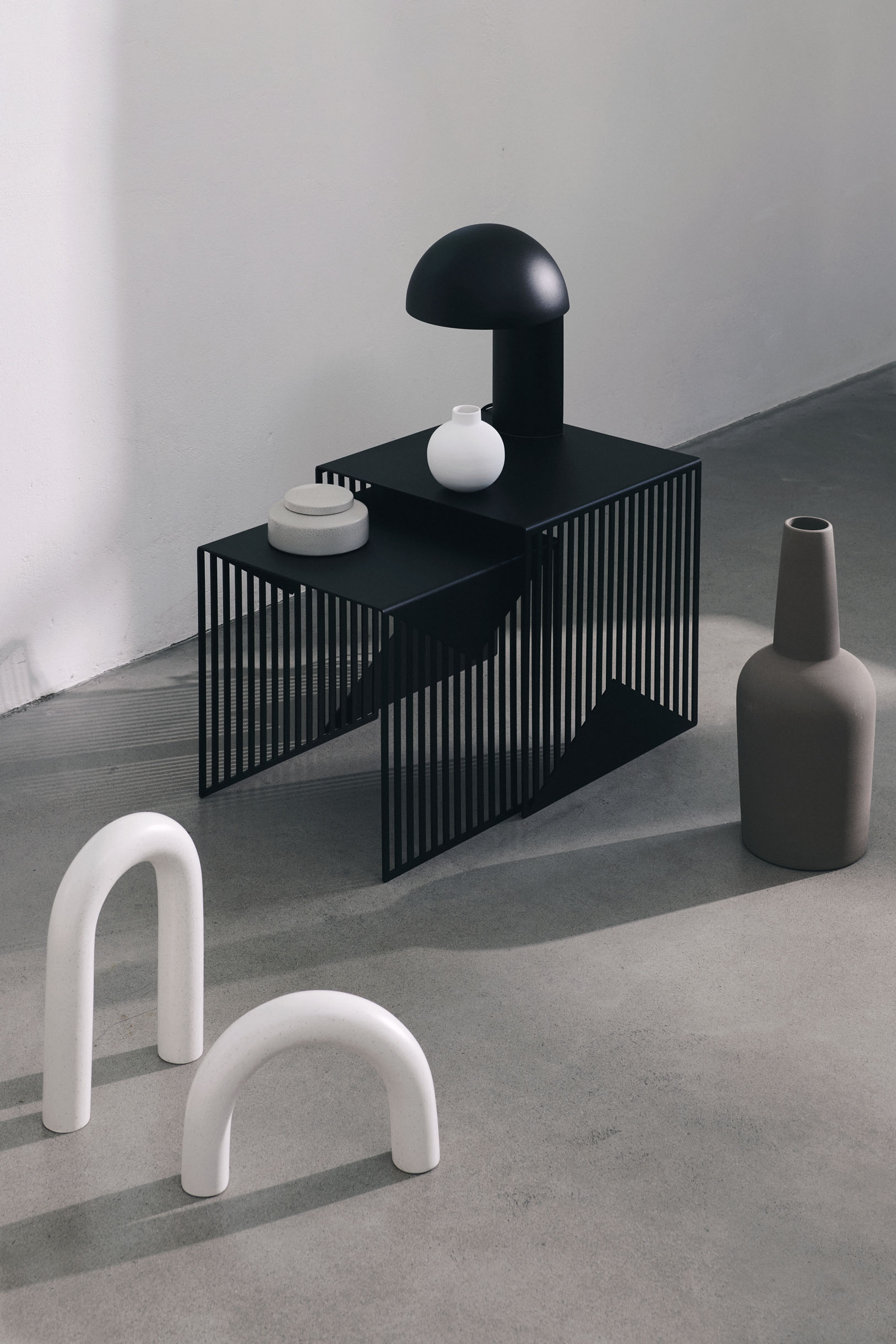 Round coffee tables can be tricky to style and generally look best when items are arranged in a triangular shape, a stack of books, a tray, a bowl. Too many square or rectangular items can make a round surface feel a little off. Play with a variety of shapes from circles to hexagons and squares and break up the surface with a comparatively large object. For example, display an oversized vase with tall branches or a large bowl to give your space a more dynamic look.