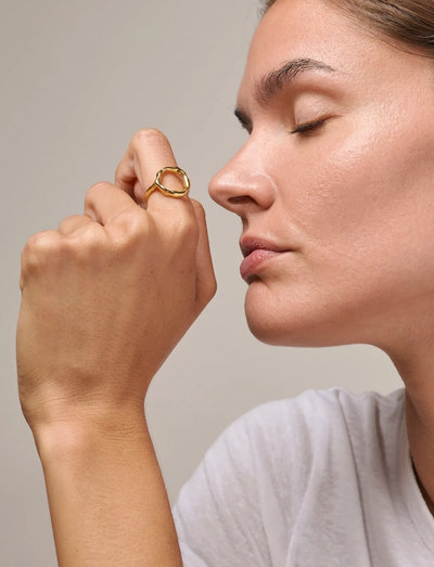 The Miriam ring appears quite substantial but is light and balanced in its design. It sits comfortably on the finger without being bulky or cumbersome. It exudes elegance and can be stylishly worn on any finger. It's certain that Miriam will become your new favorite ring, suitable for both everyday wear and special occasions. Miriam is also available as a delightful party earring. The ring is crafted from 925 sterling silver and plated with 18 karat gold.