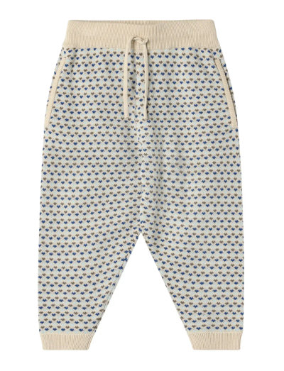 Comfortable pants with an elastic waist and ribbed cuffs at the ankles. Fine pattern all over the pants with beautiful colors. The pants have a soft material and a fine pattern that makes them suitable for both play and relaxation.