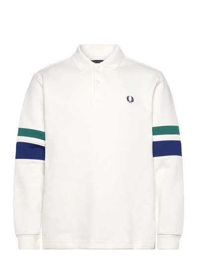 Striped detailing on the sleeves elevates this long-sleeve polo shirt. The classic silhouette is finished with a buttoned placket and the brand's signature logo on the chest.