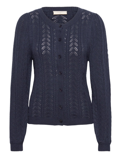 Cardigan from Freequent in a knitted material with a lovely hole pattern. Moreover, the cardigan has a simple silhouette with long balloon sleeves, a rounded neckline, elegant buttons, ribbing and a regular fit.