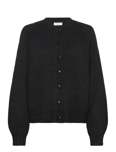 Cardigan from Freequent in a soft, knitted material. The cardigan has a simple silhouette with long balloon sleeves, ribbing, a loose fit and heart-shaped buttons on the front.