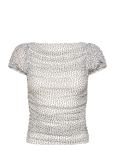 Offering a touch of romance, this mesh top features short puff sleeves and a gathered bodice. The lightweight material makes it ideal for layering or wearing on its own.