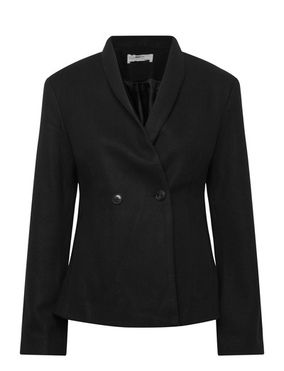 Crafted from a soft wool blend, this double-breasted jacket offers a structured silhouette. The tailored design features a classic lapel and button closure, making it a versatile addition to any wardrobe.