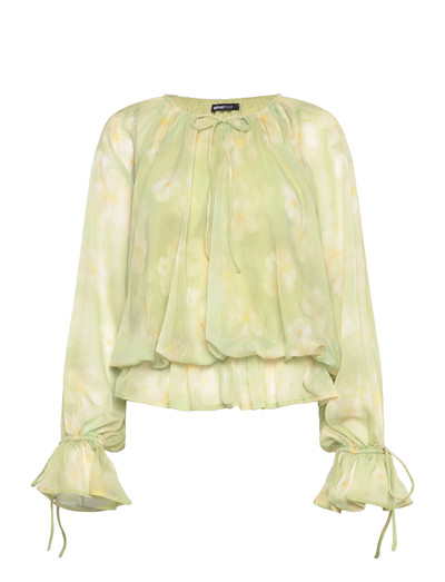 Floaty and feminine, this long-sleeved blouse features a delicate tie-neck detail. The lightweight fabric drapes beautifully, creating a flattering silhouette. Ruffled cuffs add a touch of playful charm.