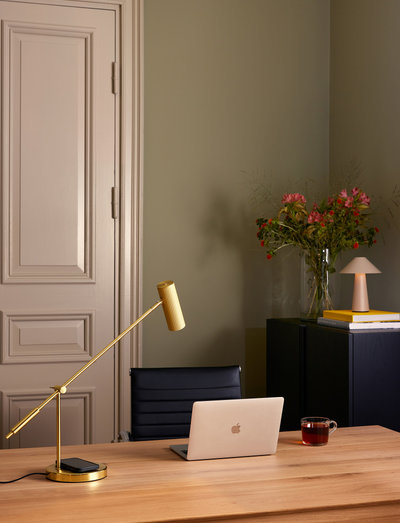 With Hubble Read on your desk or next to the couch, you can easily charge your smartphone or tablet since it has both an integrated USB C port in the base and wireless QI charging that allows you to charge lying directly on the lamp base. Hubble Read is an elegant modern desk lamp with a ribbed neat and tiltable lampshade and rod that allows you to direct the light to the desired position. The lamp is made of matt lacquered metal with details in contrasting metal, has a touch switch on the lampshade, and a 200 cm long textile cable with Europlug. The USB C port on the back of the lamp base has been tested with devices from Apple, and is compatible with releases up to iPhone 10 and iPad 15.