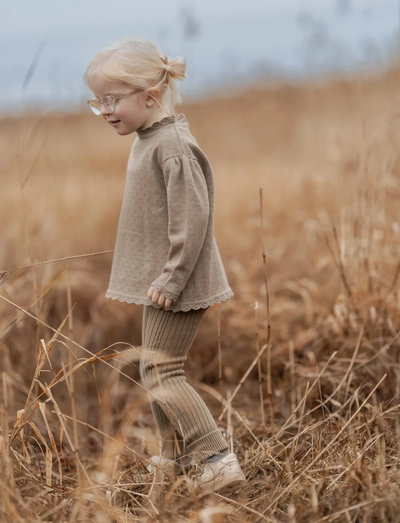 The Lynge leggings are thick, cozy knit leggings designed to keep little legs warm on chilly days. They offer a snug yet flexible fit that stays in place during play, movement, and everyday adventures. Perfect for layering under dresses or pairing with a favorite top, these leggings combine comfort, warmth, and style in one simple essential.