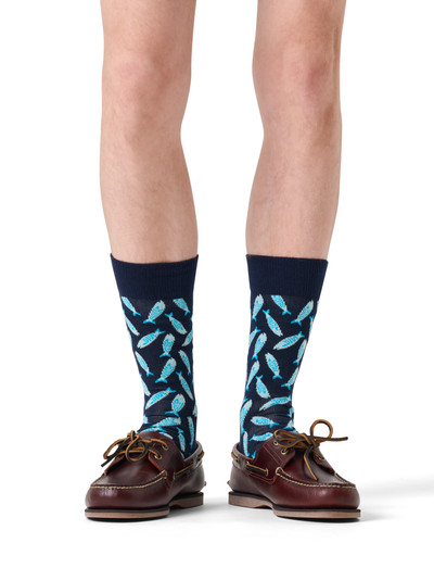 Dive into the quirky world of our Sardine Sock, where the ocean's tiny treasures take centre stage. These fun socks feature a school of sardines in a mesmerising pattern that's sure to hook attention. We're all about authentic self-expression, and this novelty design is the perfect way to reel in some personality. With its bold, eye-catching print, this funky sock is a great way to add some fin-tastic flair to your outfit.