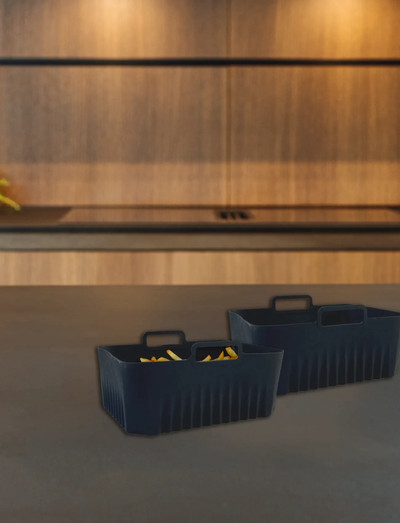 Discover new cooking possibilities with our innovative silicone liners set designed specifically for airfryers. This set is the perfect addition to your kitchen and expands your possibilities, allowing you to easily prepare a wide range of delicious dishes in your airfryer. Measuring 17.5 x 21 x 8 cm, the linerss fit most standard airfryers perfectly and can withstand temperatures from -40°C to 230°C. This makes them incredibly versatile as they can be used for everything from freezing ice cream desserts to baking cakes, making gratin, cooking lasagna or even roasting vegetables and meat. The silicone surface ensures that your food releases easily and effortlessly, making cleaning a breeze. With our silicone liners set, you can prepare healthier meals with less oil, without compromising on taste and texture. The high-quality silicone makes the linerss durable and f lexible, so they can be used again and again without losing their shape. In addition, the size and flexibility of the linerss are ideal for storage, even in small kitchens, making them both practical and space-saving. The package contains 2 x silicone liners measuring W17.5 x D21 x H8 cm.